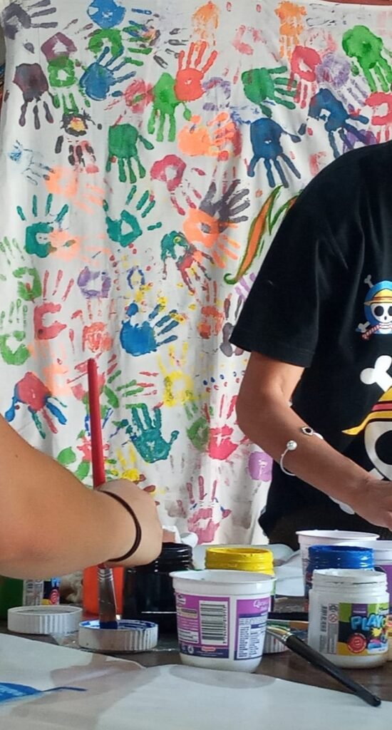 Utiliza técnicas del Teatro de las Oprimidas atravesando diferentes lenguajes artísticos: pintura, plástica, música, danza, poesía.